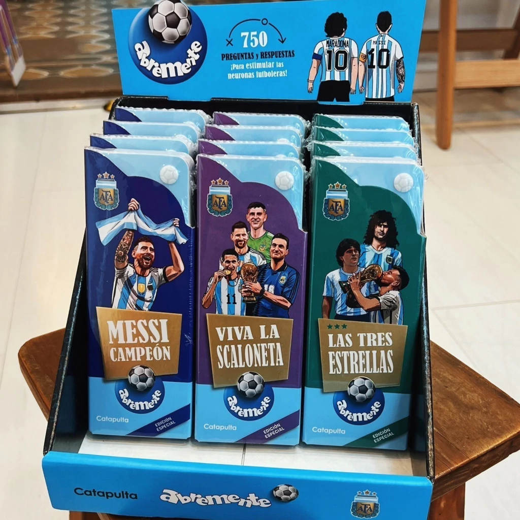 Abremente y AFA se unieron par crear Abremente fútbol: 3 libros en forma de abanico con 108 páginas y 250 preguntas y respuestas en cada uno para aprender y divertirse en familia!