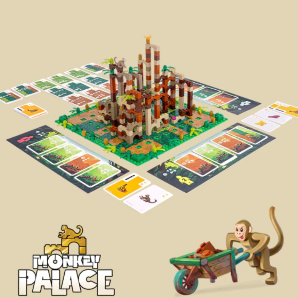 En Monkey Palace tenés que construir las mejores Escaleras para el palacio del Mono y conseguir tantas Bananas como te sea posible. Cuanto más alta sea la escalera que construyas y mas Arcos utilices en ella, más piezas de Construcción y mas Bananas conseguirás. La partida termina cuando se agoten las piezas de Costrucción.